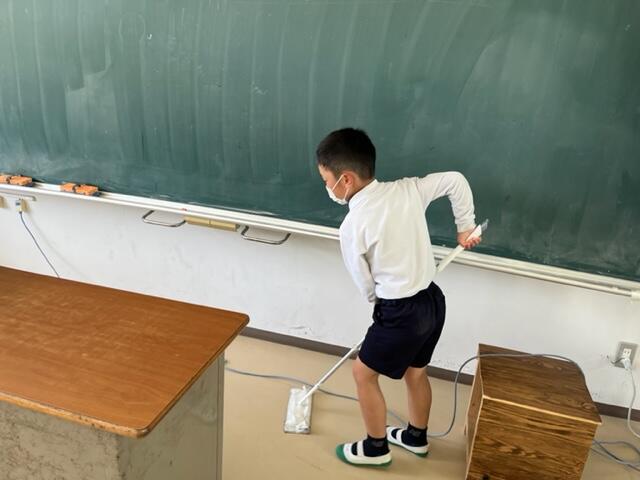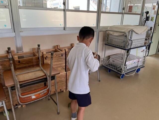 今度は、養護教諭の大塚先生が「感激した!!」と言って教えてくださいました。掃除の時間に、保健室担当の2年生2人がいないので保健室周辺を探してみると、2人は「あじさい教室」を黙々と掃除していて、「保健室掃除が終わったので、明日の分の『あじさい教室』までやることにしました」と報告してくれたそうです。(本校は児童数が少ないので、日替わりでいろんな場所を掃除する児童がいるのです。)