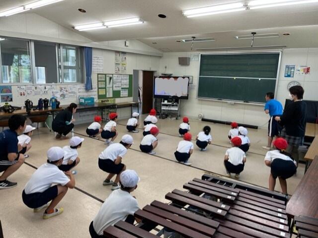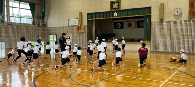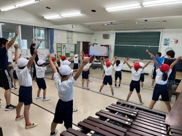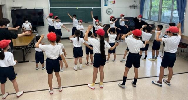 5時間目に5年担任の山本先生が、特別に1、2年生に体育を指導してくださいました。新しいダンスの練習です。「見に来られた方が感動されるようなダンスにしましょうね。」1年生も2年生も真剣そのものです。