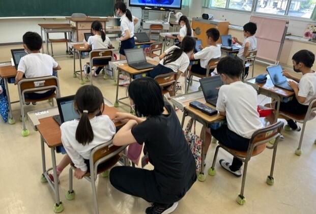 3・4年生は、タブレットを使って学習していました。昨年1年間で、どの児童もかなり使いこなせるようになってきています。