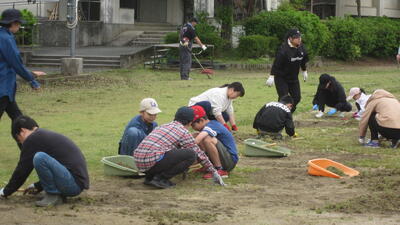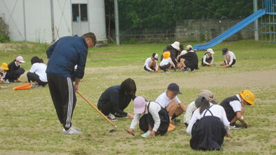 本日は、運動場の草取り(まだまだ生えてきます・・・)をしていただきました。