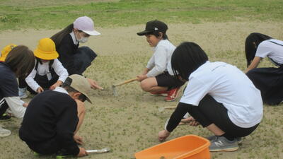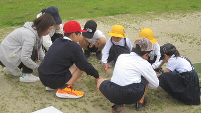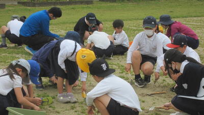 本日から運動会に向けて、運動場の草取りをたてわり班で頑張ります。