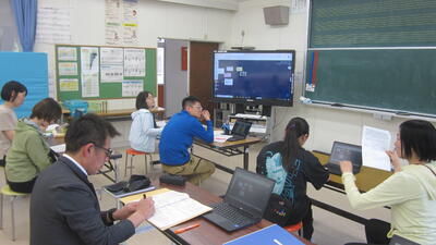 ちなみに、5・6年生の算数は来週に研究授業があります。研究主任の寺本教諭も奮闘中。こちらも楽しみです。(校長 上田 玲子)