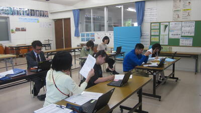2時間目に全学年ソフトボール投げや上体起こし、反復横跳びなど行いましたが、その時間と並行して地域学校協働活動推進員の皆様と校長・教頭とで今年度の打ち合わせを行いました。