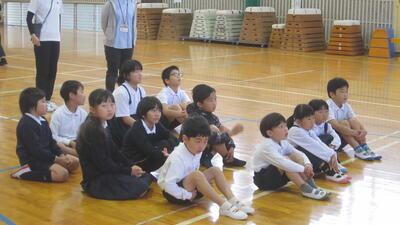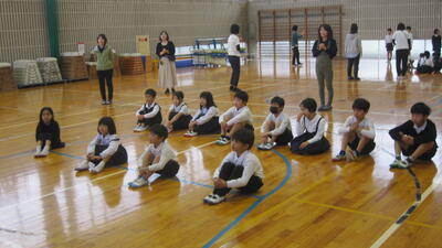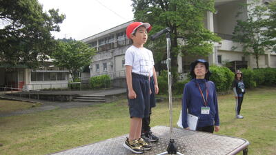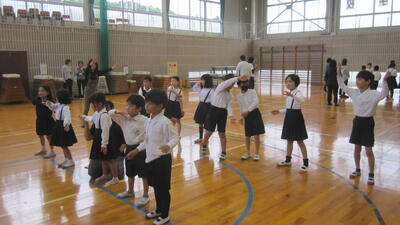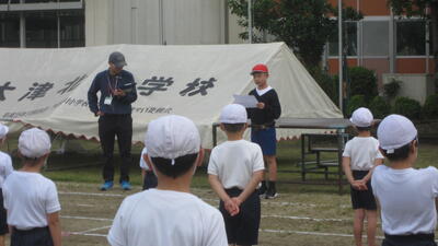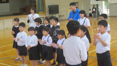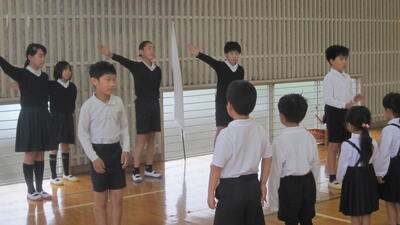 1~3年生は、体育で運動会の練習をしていました。表現運動の最後の場面、隊形移動の確認をしています。本日も気温が上がってきましたので、休憩、給水を適宜とりながら取り組みました。暑い中、頑張っている子どもたちです。