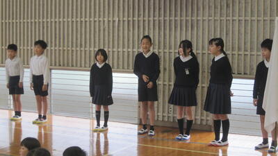 8:20 全校児童・全職員体育館に集合です。団長の話、応援団員の自己紹介に団員は耳を傾けます。