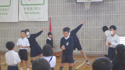 詳しいことはお伝えしません(本番のお楽しみです)が、ダンスも自分たちで振り付けを考え、全体練習1回目よりも断然声が出てきて、精一杯頑張っている子どもたちでした。でも、まだ1週間あるので、最後まで児童も職員も諦めずに最高の姿、最高の表現を磨き上げていきます!!当日、雨が降らないことを祈るばかりです。(校長 上田 玲子)