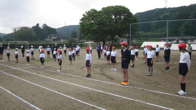 本日から、きれいになった運動場で全体練習が始まりました。体育主任の稲尾先生からの話があり、自分の立ち位置や役割を確認していきます。