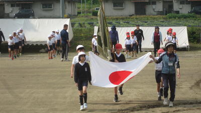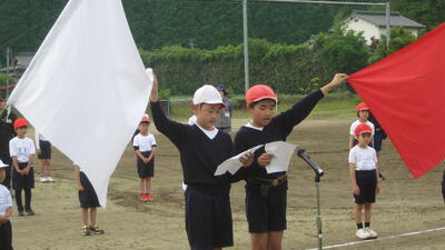 1年生は入学後2ヶ月経っていないのに、たくさんの演技をこなし、2~3年生のパワーとハキハキした大きな声と歌声は団員を盛り上げ、4年生は今年度から準備からたくさん関わり、5~6年生の係と変わらずきちんと運動会を成り立たせました。5~6年生は応援団リーダーとして考え、リーダーシップをとり、黙々と運動会準備に取りかかり、4年生を助け、とても立派な代表の立ち振る舞いができるようになりました。笑顔で悔いなく心に残る運動会になったことでしょう。43名児童全員、堂々として格好良かったです。
