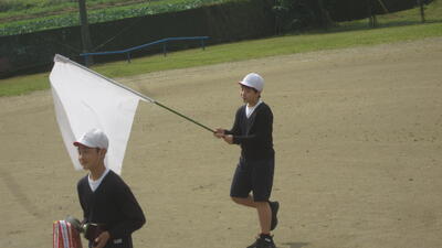 本当は土曜日に開催ができれば、本校の運動場まで観に来てくださる予定でしたが、雨による順延だったため、見に来られなかったのです。