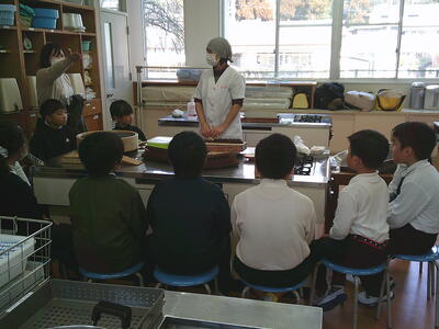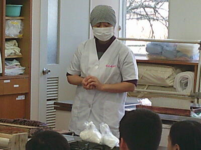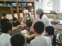 持久走の後は、2~3年生によります銅銭糖づくり見学で、浪花屋本店の古庄様に母娘で来校していただきました。