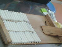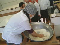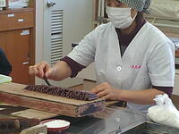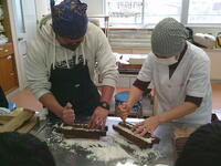 気温や湿度、乾燥に繊細で力の入れ具合や手早さが難しかったです。作成後、2~3年生はできたて銅銭糖を試食しました。
