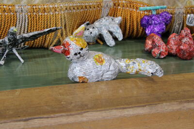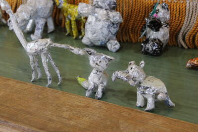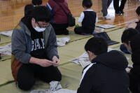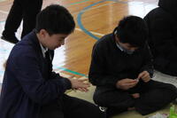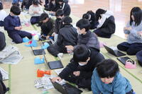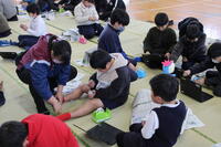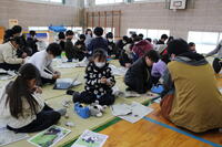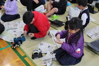 保護者も数人来校され、一緒に体験されていました。2/14に実施される「子育てフェスタ」でも、この新聞紙アート体験をされるとのことで、他校の保護者さんも来校されていました。