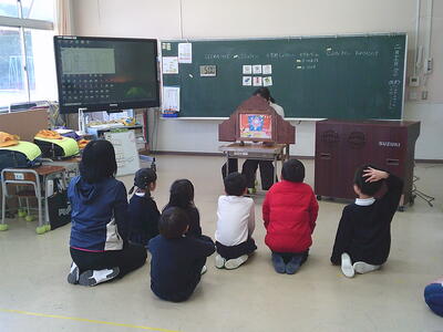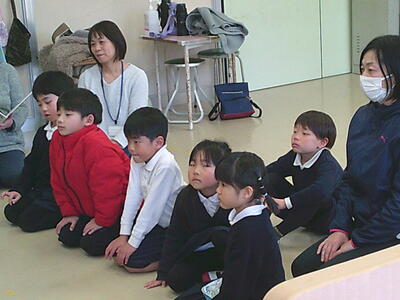 まずは、武田さんからの北小水物語の歌の指導。1年生はこの一年間で難しい旋律を上手に歌えるようになりました。