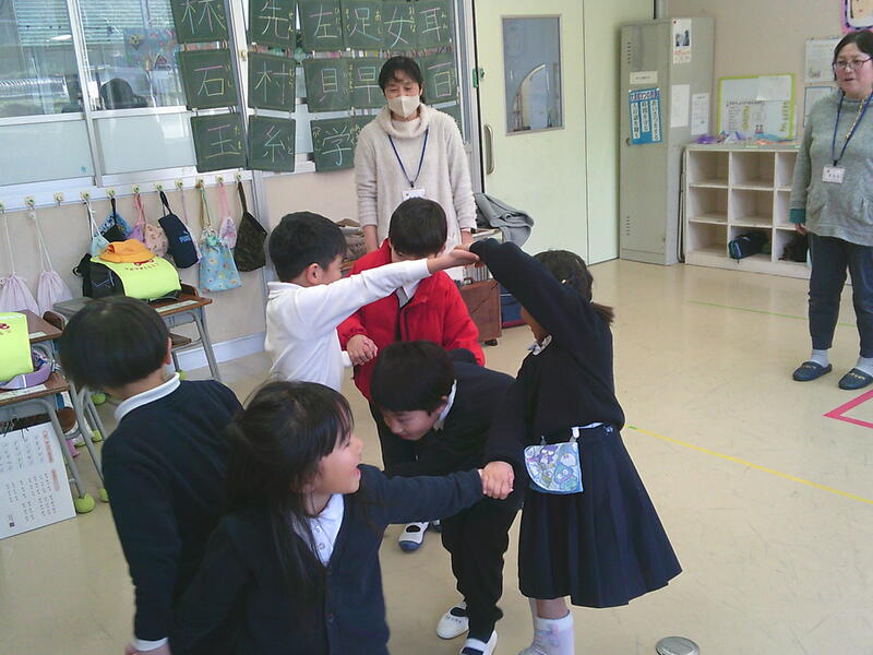 二人、三人、そして六人で全部成功!!歓声が上がりました。こんな時、誰かがリーダーシップ出して、それに協力して成功するのが集団遊びの醍醐味ですね。