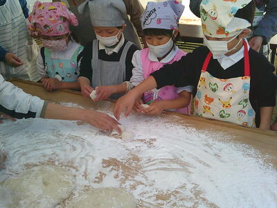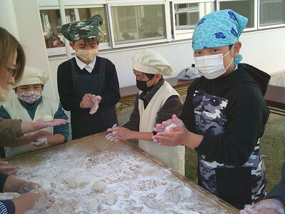 ついた後は、丸める作業。泥団子作りの要領で上手にします。