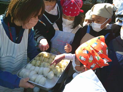 最後は、豚汁とおにぎりまでいただき、お土産のおやつももらっちゃいました。喜ぶ喜ぶ…。本当にありがとうございました。貴重な体験と地域の温かみを十分感じさせられた素敵な時間となりました。