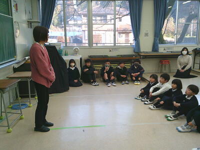 本日の児童集会は、大津町職員学習支援員の榎田先生のお話でした。