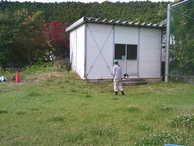 今日は、グラウンドの伸びていく草を刈っていただきました。