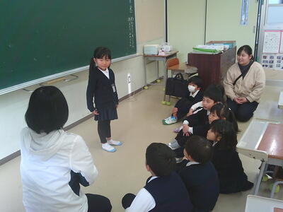 いつもながら、しっかり話を聴く子どもたちです。冬休み明け、朝起きることが辛かったのではないですか?と問うと「そんなことない」と首を振っている子どもが多く、苦笑いしている児童もちらほらと・・・。