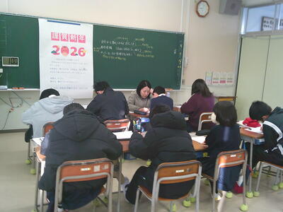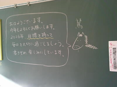 集会が終わり、各学級では冬休みの思い出発表や後期後半(または令和8年)の目標決め、教科の学習など、机に向かってしっかり考えたり、友達の発表を自分の思い出と重ねて聞いたりしてスタートしていました。