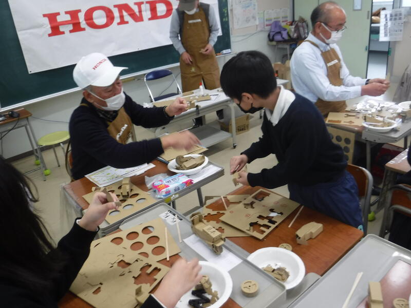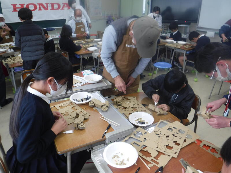 1月30日(金)の5、6時間目に、HONDAより講師の皆様をお招きして、「段ボールクラフト」の出前授業を行いました。
