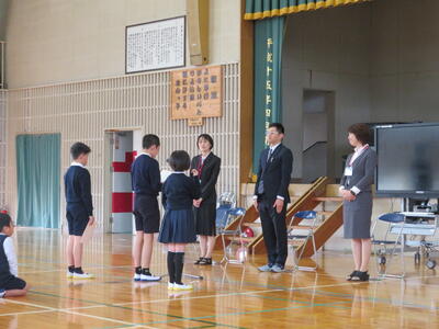 思い思いに担任の話を聴き、午後は4~6年生が明日の入学式の準備に汗をかきます。少ない人数ながら、よく動く子どもたちです。明日、1年生8名が本校に入学することもとても楽しみにしています。