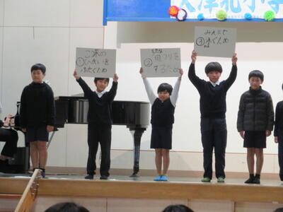 すくすく太鼓のオープニングでの迫力のある演奏から幕を開け、児童会執行部と放送委員会の進行の元、各学年伸び伸びとした発表をすることができました。何を学んだのか、学んだことから何を感じ、どんな気持ちになったのか、