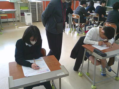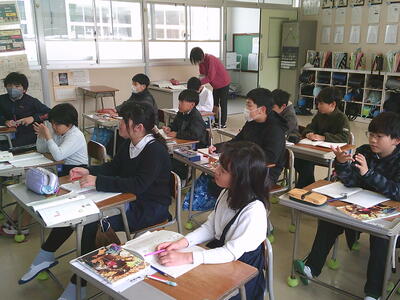 6年生は道徳の時間。5年生に気を取られて、話の内容を聞き逃しましたが、意見交流の時に「調子にのってる・・」との言葉が登場。本音を言えるのがいいですね。