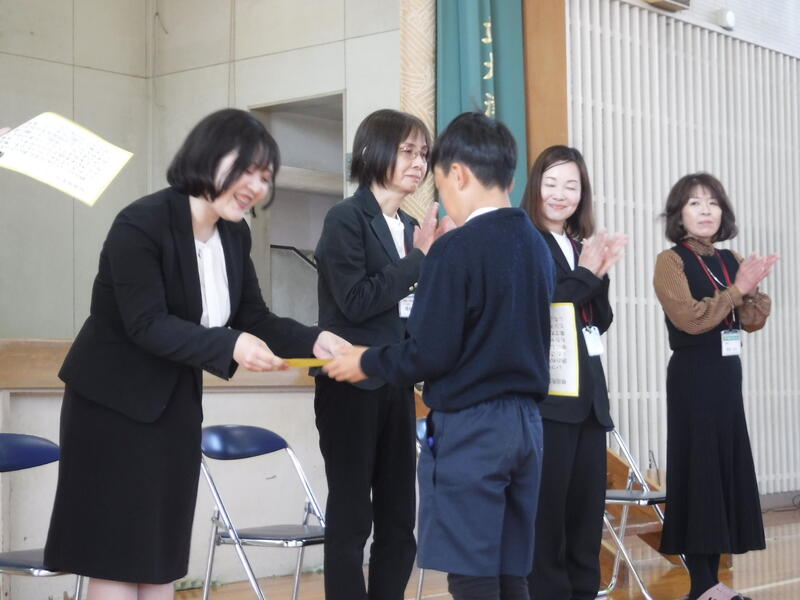 先生方から、大津北小学校の思い出や子どもたちへのメッセージ、別れの言葉をいただきました。子どもたちもまっすぐに先生方を見つめ、話をきいていました。別れを惜しんで、子どもたちもすごく静かです。