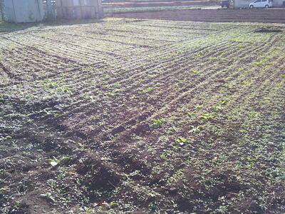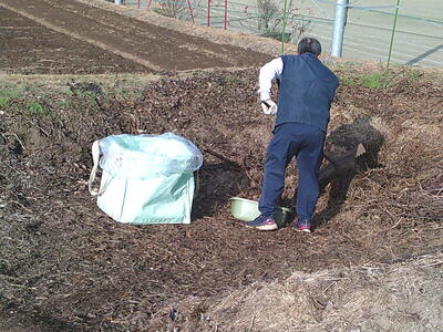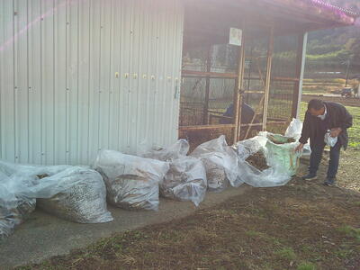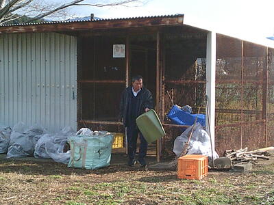 飼育小屋跡と150Lの袋に入った枯れ草・・・