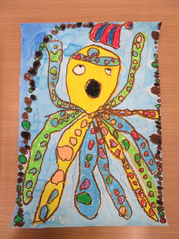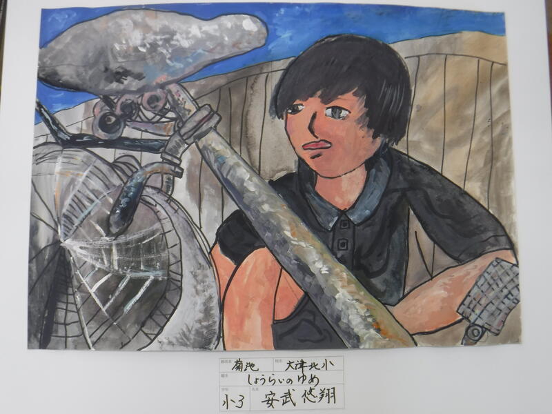 まずは、表彰。令和7年度大津町絵画展の入選・特選の人たちの表彰です。中でも、3年のはるとさんの作品が、大津町の特選に選ばれ、更には、熊本県の特選にも選ばれました。