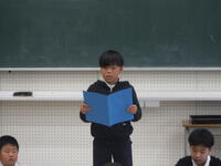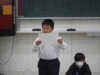二人は代表で賞状を受け取りました。おめでとうございます!!その後、2年かなとさん、4年あさひさん、6年しゅんさんの「今年を振り返って」の作文発表がありました。それぞれ、本気でがんばって大きな成果が得られた喜びと、まだ今以上にがんばりたいことを詳しく話すことができました。
