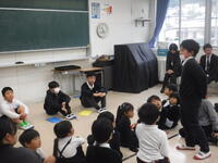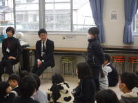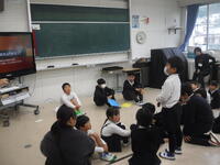 田中先生から、「マナーやルールを守ってみんなが楽しく過ごせる冬休みに」という話や日吉先生から「毎朝7時までに起きること」「ゲームの時間をかんがえること」「体を動かすこと」などをご指導いただき、集会は終わりました。