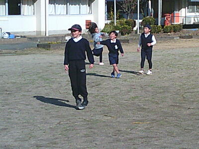 ハンターからタッチされた児童は、サッカーゴールで留置され、助けを呼びます。そこで、タッチされていない児童からタッチされたら、逃げ出すことができます。まあ、果敢に助けにくるくる・・・