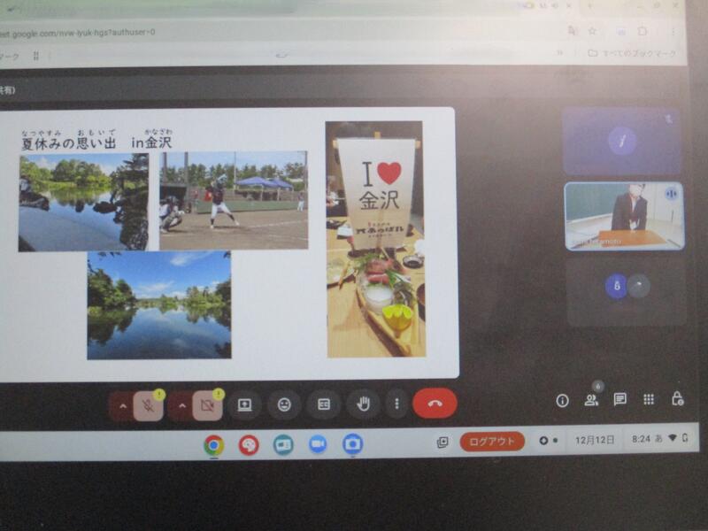 今回は「稲尾先生のお話」です。先生が改めて自己紹介されました。スライドにまとめられていて、クイズもありました。いつもは対面での集会ですが、初めてのオンラインでの集会でしたので、子どもたちも多少戸惑いはありました。しかし、画面越しに拍手をしたり、うなずきなどの反応をしたりしていました。また、オンラインで質問もしていました。