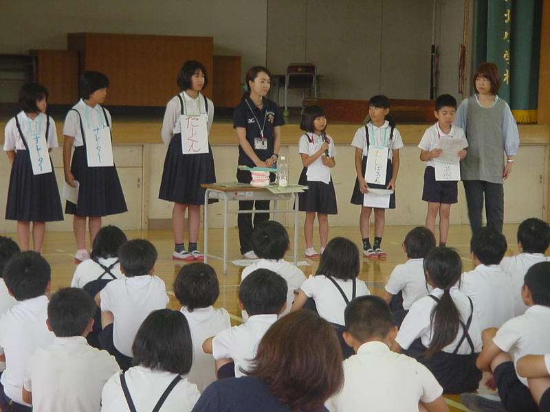 今日の朝、児童集会がありました。今回の担当は保健委員会です。