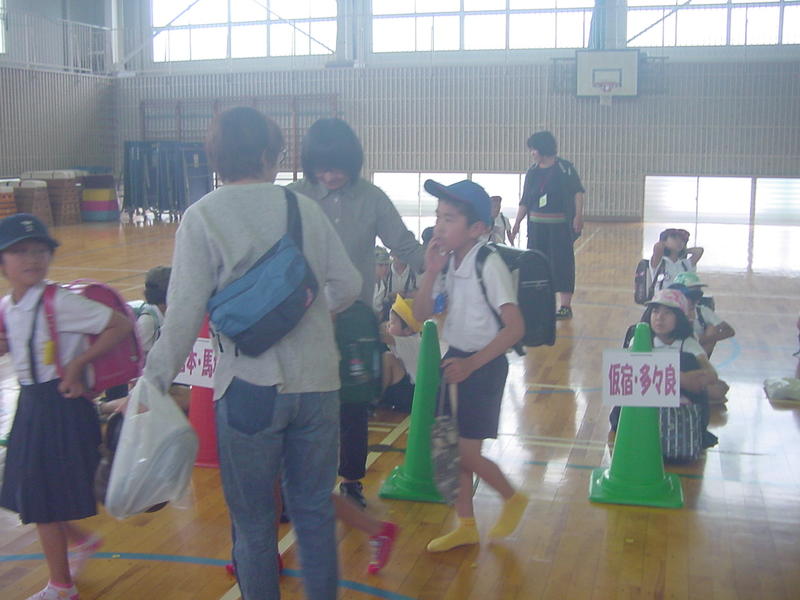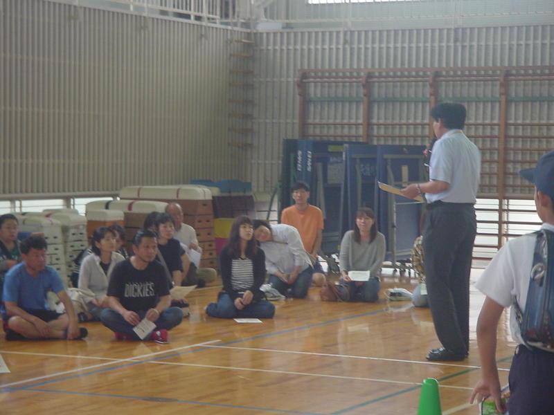 保護者には、早めに体育館に集まっていただき、校長や防災担当者から説明を行いました。