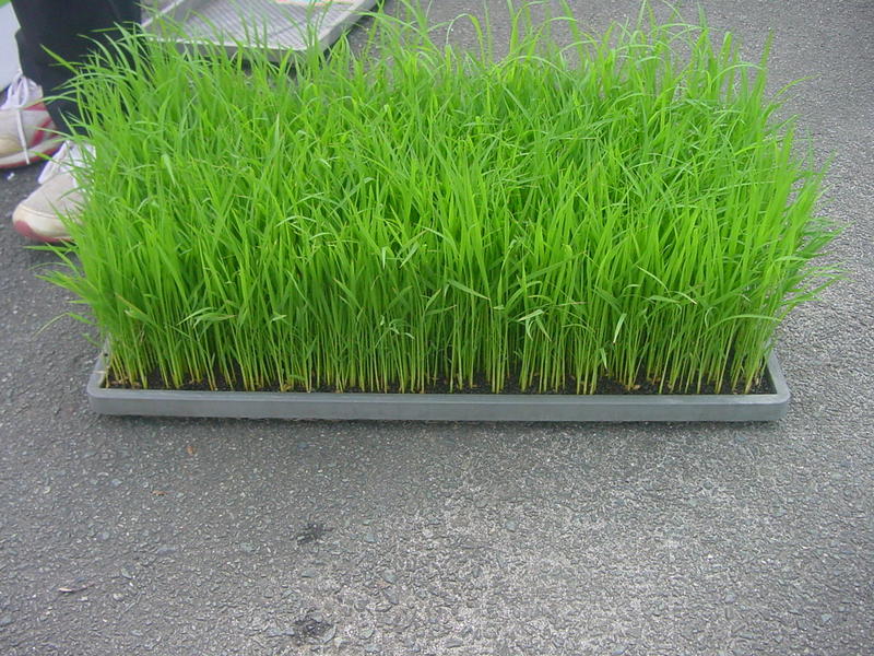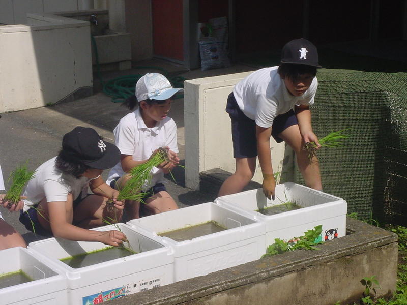 種もみまきをしたあと、教室のテラスで水やりをしながら苗の成長を見守ってきました。