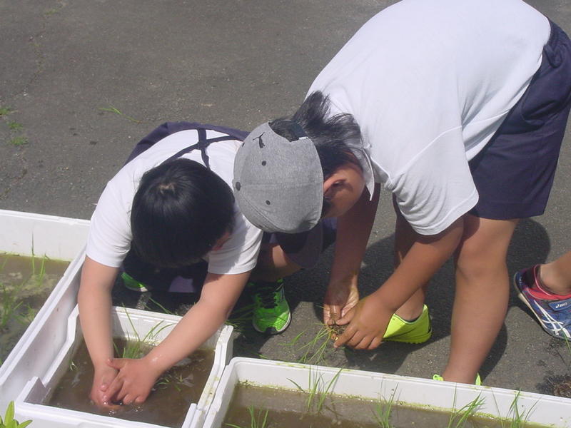 ミニ田んぼで田植えをしたよ