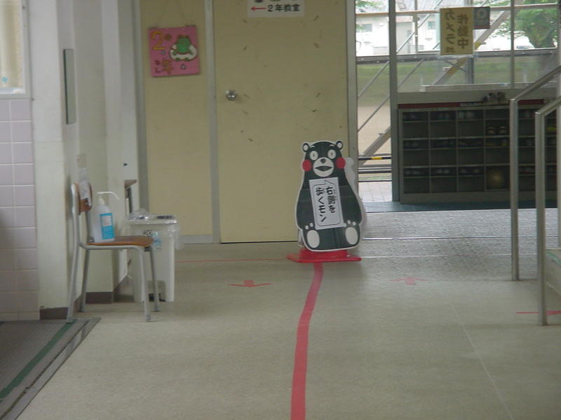 北小のろうかにくまモンが出現?