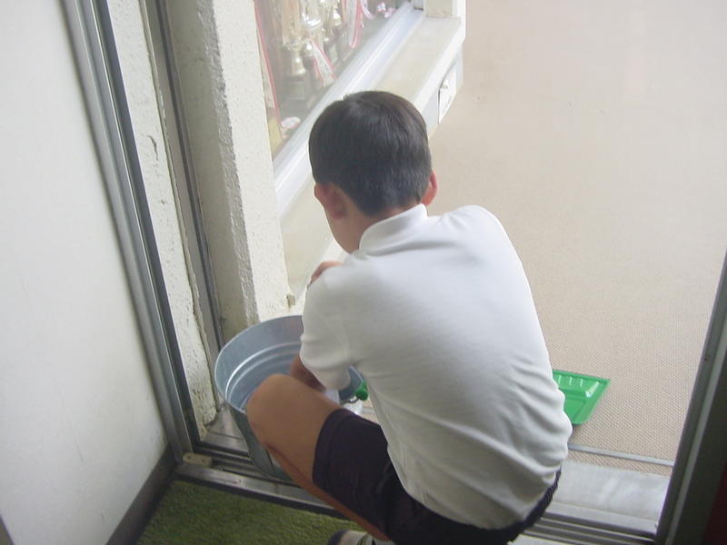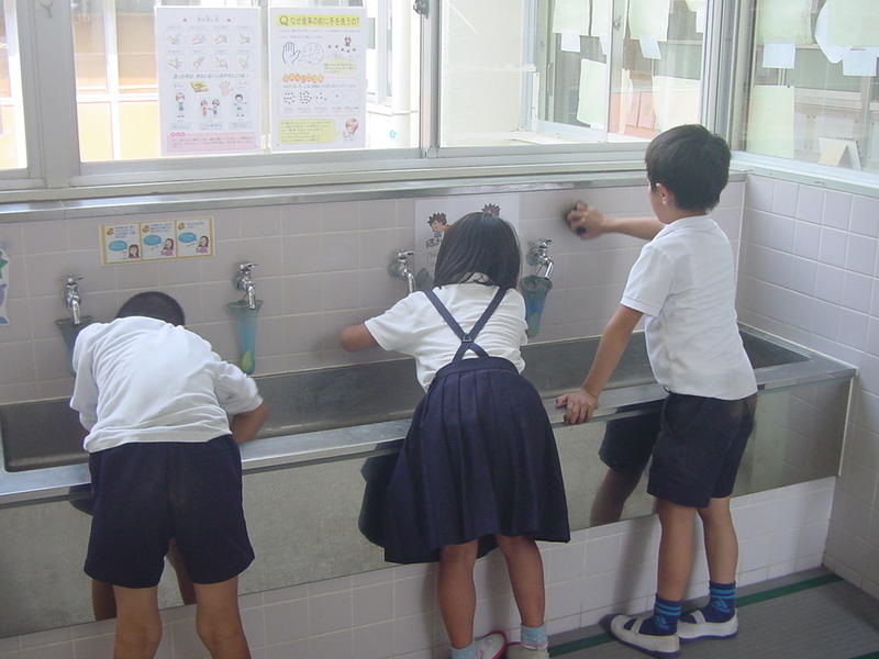 くつばこや 手洗い場、給食室のまわりも、分担して頑張ってくれます。