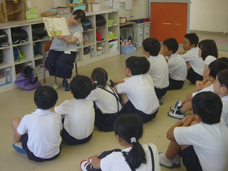 木曜日の朝の活動は読書です。2週間に1回は読み聞かせをしていただいています。