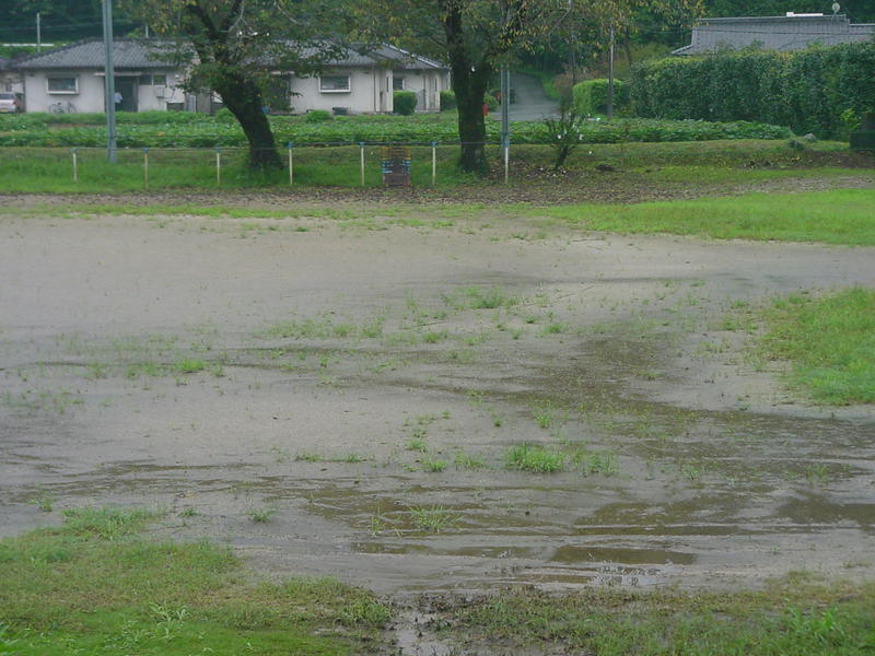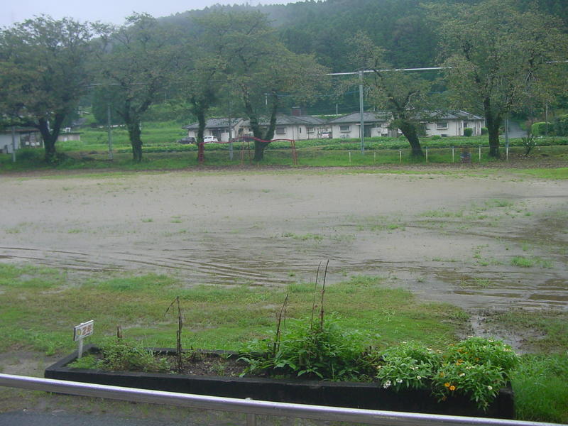 8月26日から前期後半が始まり、北小にも子どもたちが元気に登校しています。残念なことに雨が続き、外で遊ぶことができません。今朝は北小っ子タイムでしたが、やっぱり雨。運動場はご覧のとおりです。