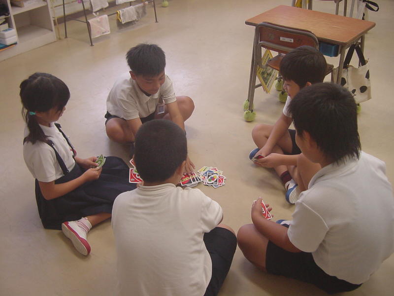 そこで、今日は室内での縦割り班活動でした。フルーツバスケットやハンカチ落としをする班