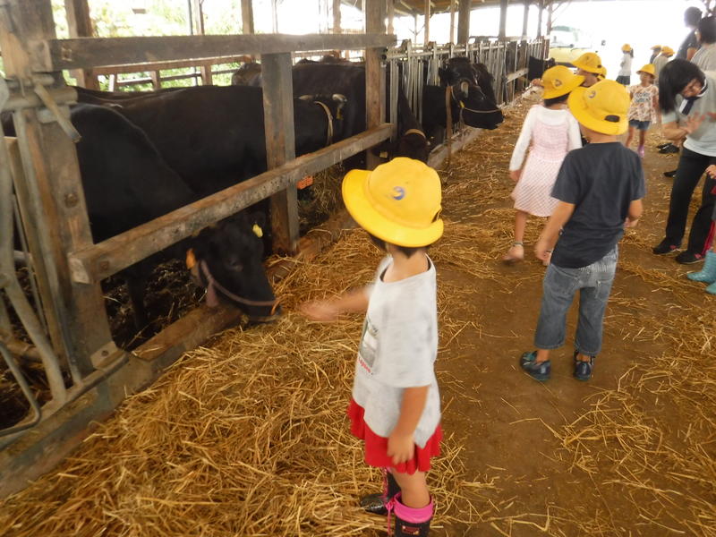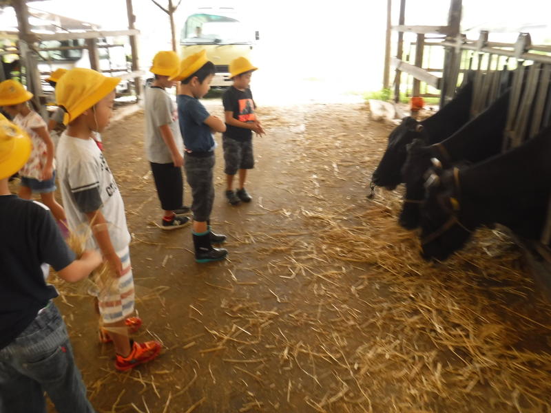 おうちたんけんにいきました。8月28日は御願所・矢護川方面で、牛舎を見せてもらいました。お友達の家にも行きました。