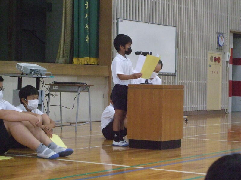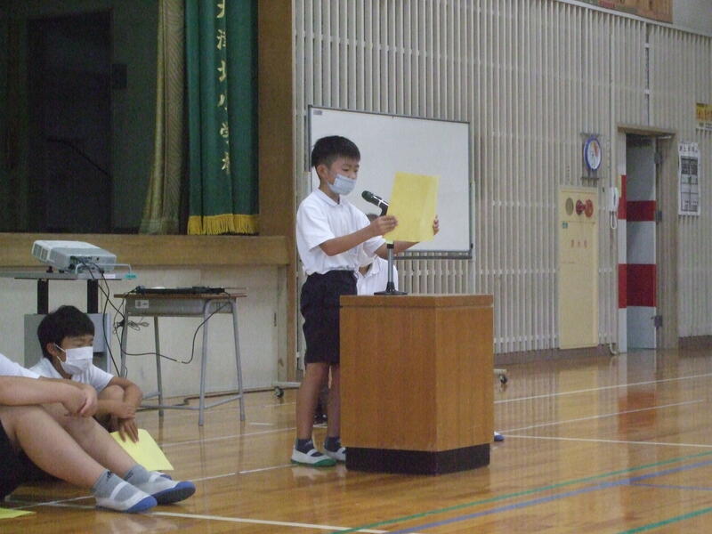いよいよ、今日7月21日から夏休みです。ご家庭では、児童の見守りなどお世話になります。朝起き、学習、手伝い、運動、就寝をリズムよくして、元気で思い出多い休みにしてください。