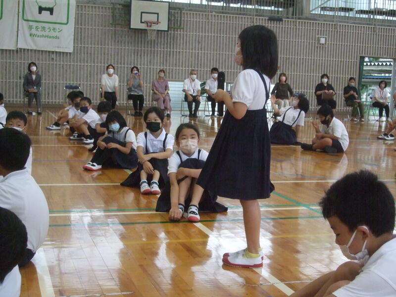 発表もお返しも、自分の言葉で自分の意思での発表でした。今年は、朝活動で言葉遊びや集会を継続的に行っています。また、国語では3点セットを使った発表や対話を頑張っています。いい効果が出てきたのかもしれません。