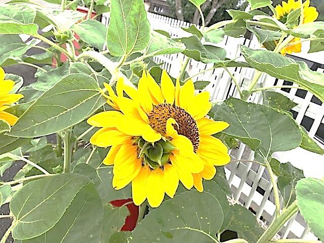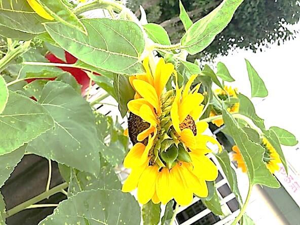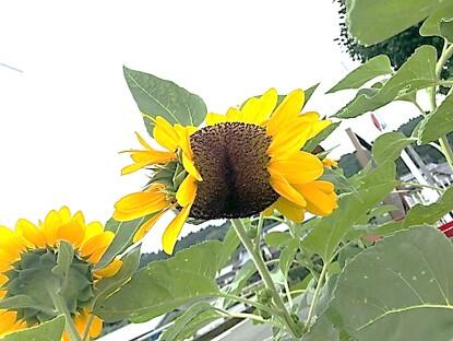 7月20日。明日から夏休みという日です。学校正門の左に咲いているひまわりは、頭が重くてすこし俯いています。用務員の吉良先生によると、なんと、「双子のひまわり」。初めて見聞きしました。
