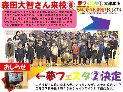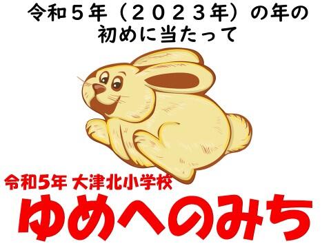 (前略)今年の干支は、『兎』ということで、兎のように飛び跳ねる、飛躍の年にしたいと思います。何が飛び跳ねるかですが、大津北小学校としては、今年のテーマを『夢への道』としました。