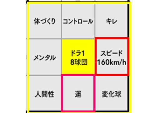 「ドラフト8球団に1位指名される」という「夢」の周りに、「体づくり」「コントロール」「キレ」「スピード160㎞」「変化球」「運」「人間性」「メンタル」の8つのポイントを書いています。
